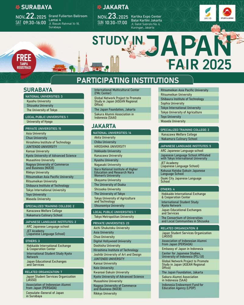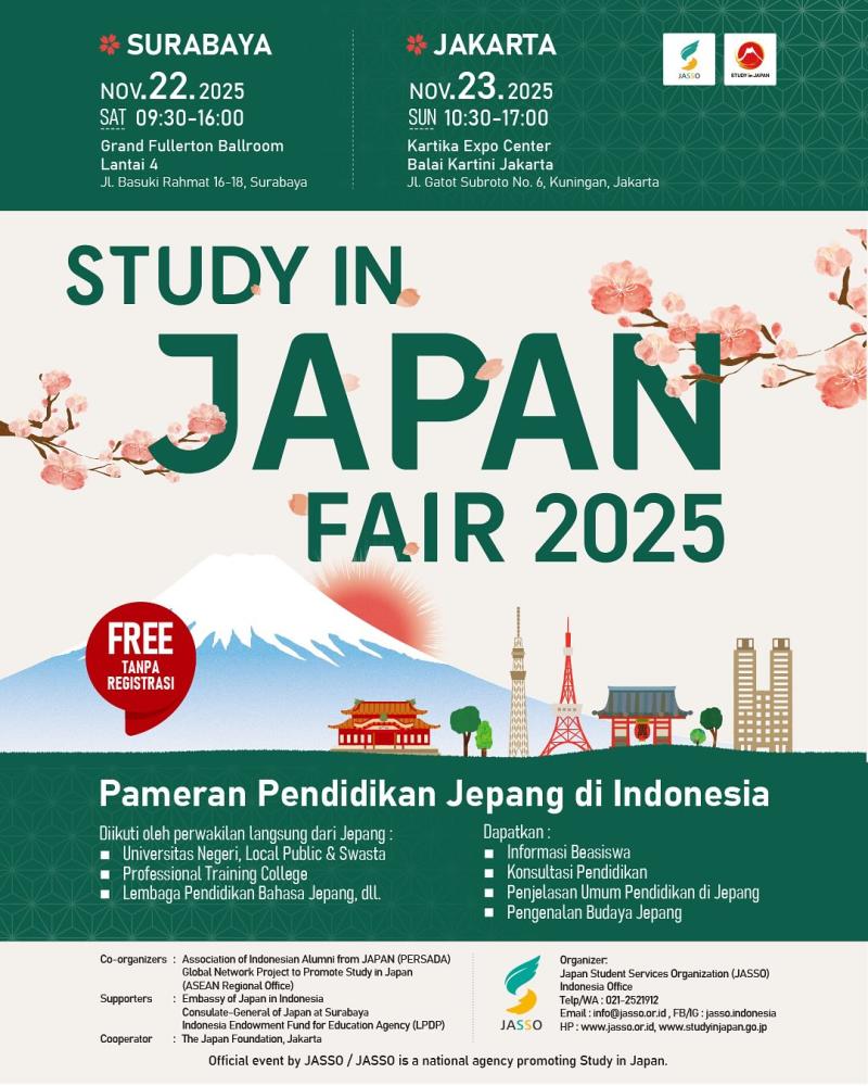 日本留学促進のための海外ネットワーク機能強化事業(東南アジア)では、このたび、独立行政法人日本学生支援機構が主催する「2025年度日本留学フェア(インドネシア)」を共催にて開催いたします。